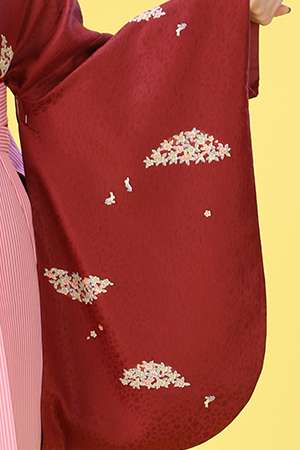 エンジ × ピンク 小花 袴レンタルセット